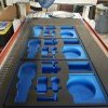 Zotefoams Plastazote. This foam is a closed cell nitrogen- charged cross linked polyethylene foam that has increased tear strength while being lightweight. This foam is available in almost any color. This foam is an excellent choice for case inserts and tool kits as it is impervious to most chemicals.
