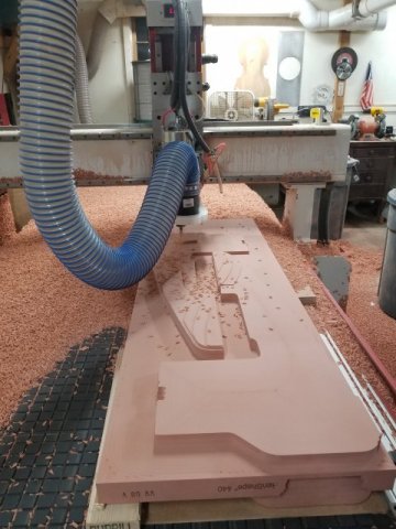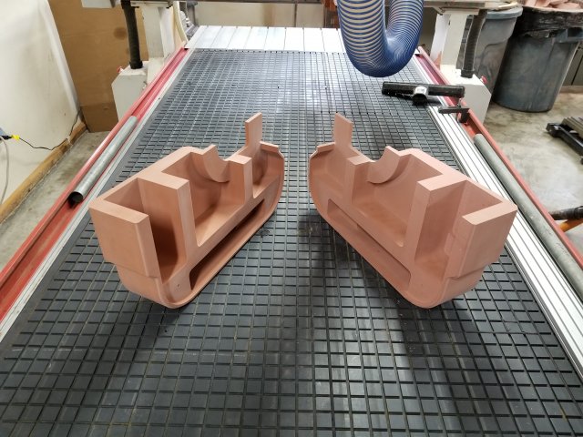 Machinable foam is a hard, rigid foam that retains high detail, is very durable, and can be machined at high speeds, similar to machining wax But unlike wax, it’s mostly air, so the amount of swarf generated during milling is significantly less. Most machinable foam is made from high-density polyurethane, and it comes in many different densities, depending on your needs. Lower densities are lighter, cheaper, and produce less swarf than higher densities; however, higher densities have a smoother texture and retain detail better.
