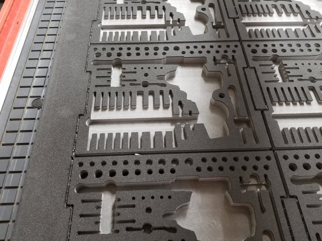 Zotefoams Plastazote. This foam is a closed cell nitrogen- charged cross linked polyethylene foam that has increased tear strength while being lightweight. This foam is available in almost any color. This foam is an excellent choice for case inserts and tool kits as it is impervious to most chemicals.