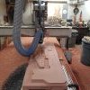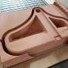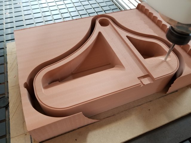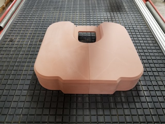 Machinable foam is a hard, rigid foam that retains high detail, is very durable, and can be machined at high speeds, similar to machining wax But unlike wax, it’s mostly air, so the amount of swarf generated during milling is significantly less. Most machinable foam is made from high-density polyurethane, and it comes in many different densities, depending on your needs. Lower densities are lighter, cheaper, and produce less swarf than higher densities; however, higher densities have a smoother texture and retain detail better.